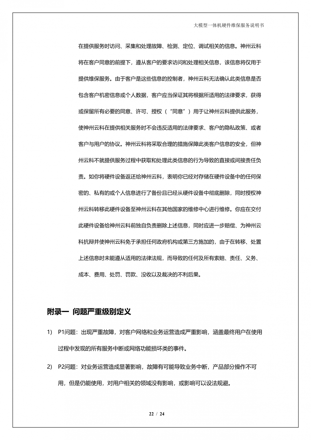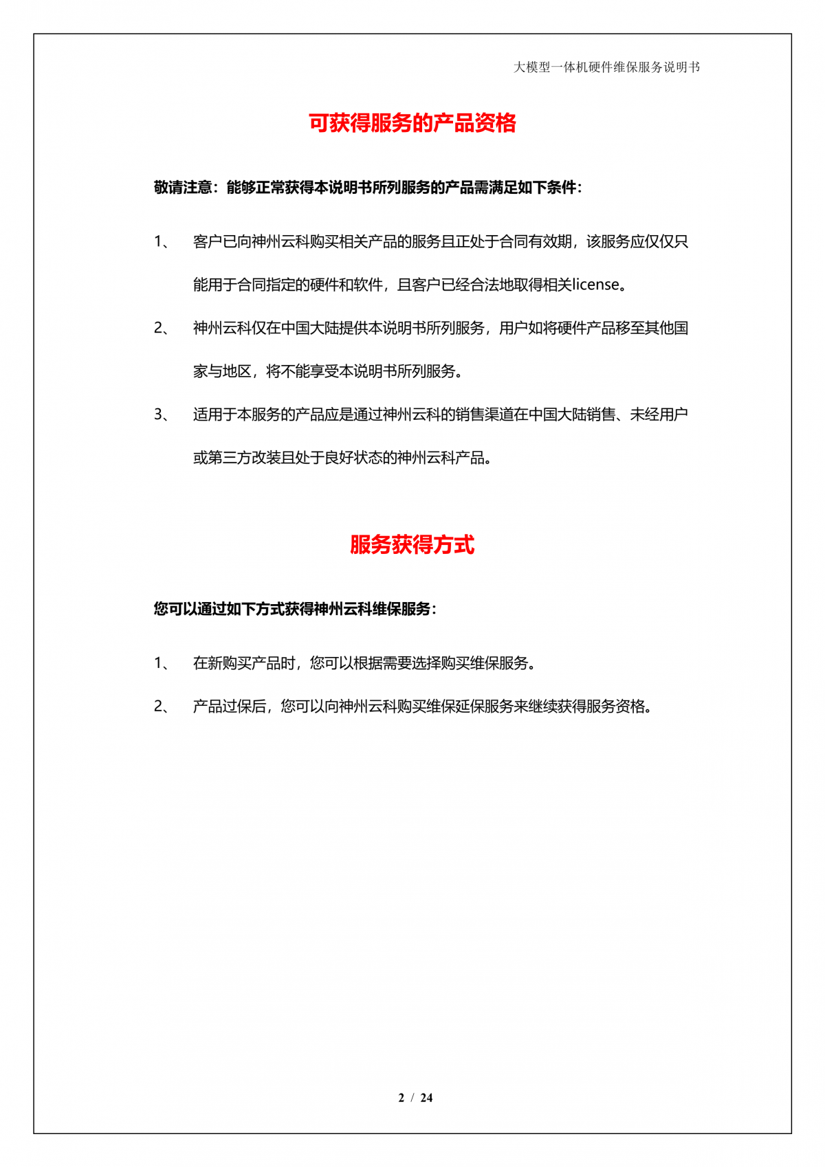 k8凯发A924 DS大模型一体机硬件维保服务说明书_V1.1